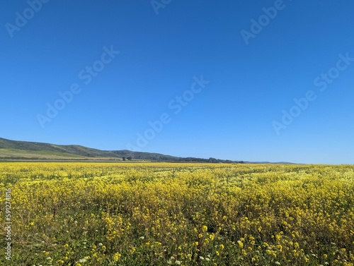 Fototapeta premium Cowell Ranch State Beach farm field landscape, wildflower farm field, Half...