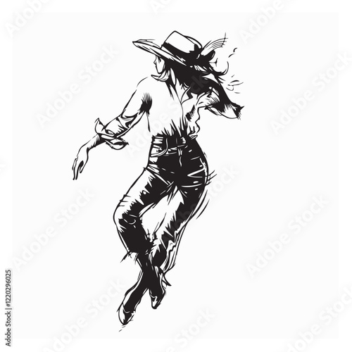 © Istianah, Fototapeta premium Cowgirl Dancing People Vector Images isolated on white background.