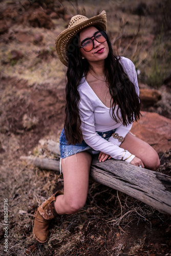 © Mylifeontopdm, Obraz premium cowgirl lay back boot up, Happy cowgirl riding trunk