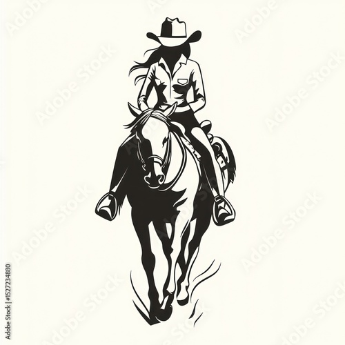 © rudy, Fototapeta premium Cowgirl rides horse in motion