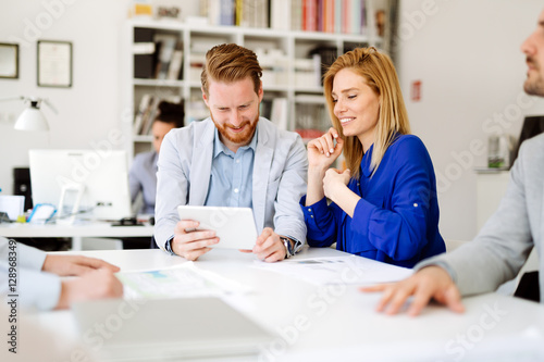 © NDABCREATIVITY, Fototapeta premium Coworkers working on project together
