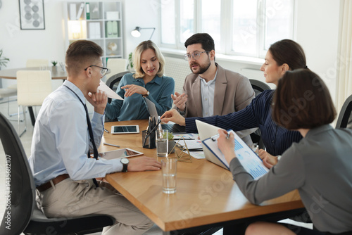 Obraz premium Coworkers working together at wooden table in office