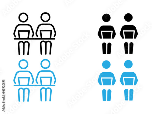 © Topline, Fototapeta premium Coworking icon black and white vector outline sign