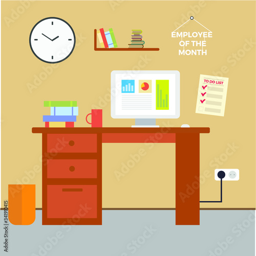 © Frame Studio, Fototapeta premium Coworking office interior modern center creative workplace environment banner, flat vector illustration .