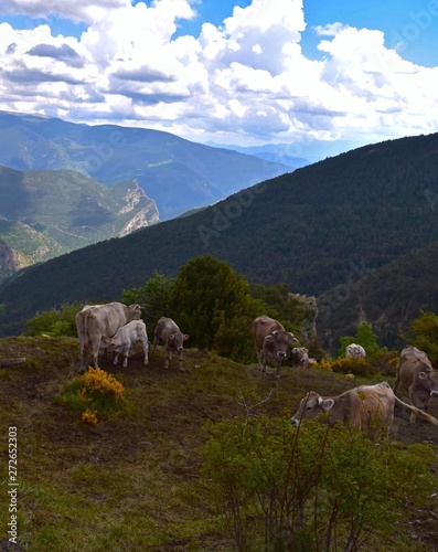 © JACKDAN66, Naklejka premium Cows in alpage in Spain