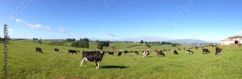 © Stillfx, Fototapeta premium Cows in green grass. Blue sky