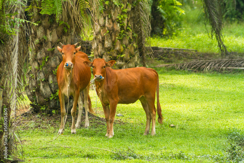 Fototapeta premium Cows in palm tree in asia