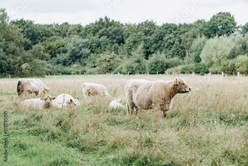 © EwaStudio, Obraz premium Cows in the pasture. Cows rest and eat in the clearing