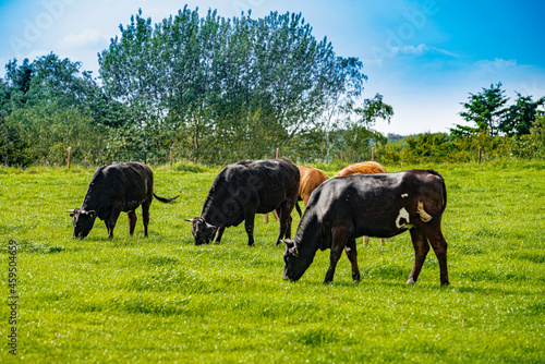 © EwaStudio, Fototapeta premium Cows On On Farmland. Herd of cows at summer green field