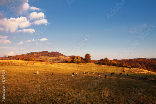 © maros_bauer, Fototapeta premium Cows on pasture in autumn