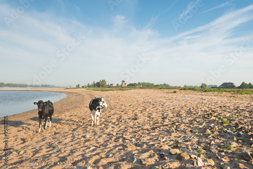 © Ruud Morijn, Fototapeta premium Cows on the sandy beach of a river