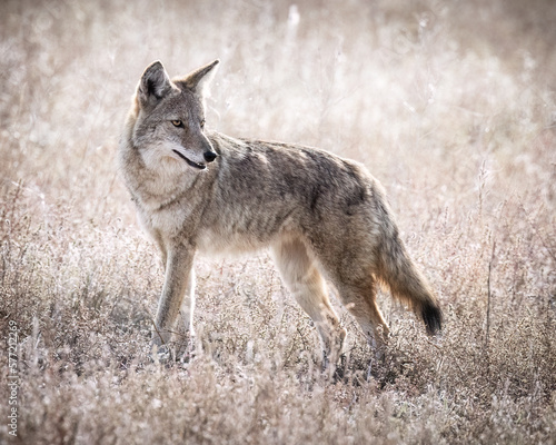 © Michael, Fototapeta premium Coyote (canis latrans) standing broadside in field looking back Colorado, USA