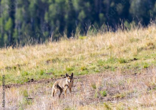 Fototapeta premium Coyote Hunting Prairie Dogs