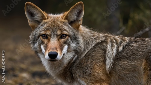 © Nemanja, Fototapeta premium Coyote is standing in the woods