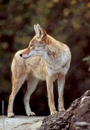 © George Erwin Turner, Fototapeta premium Coyote on Log Looking Behind