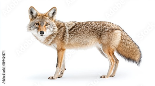 © amorn_m, Naklejka premium Coyote Standing in Profile on a White Background with Alert Expression