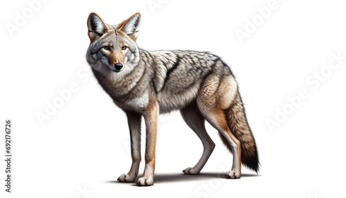 © dragon_fang, Obraz premium Coyote standing isolated on white background