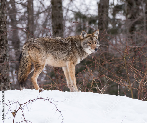 © FotoRequest, Fototapeta premium Coyote standing on snow in winter, Portrait
