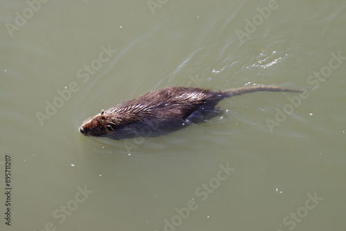 © frrlbt, Obraz premium Coypu swimming in murky river water