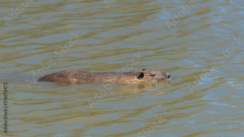Obraz premium Coypu, wild animal swimming in a lake in Camargue
