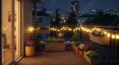 Obraz premium Cozy Balcony Oasis with City Lights at Night