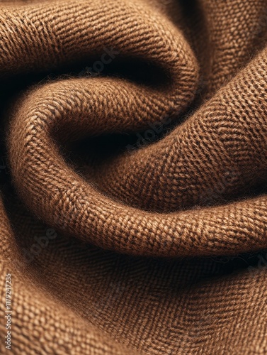 Fototapeta premium Cozy brown woolen fabric with detailed texture and soft folds.