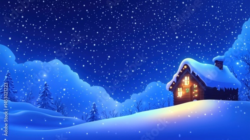 © li, Obraz premium Cozy Cabin in a Snowy Winter Wonderland