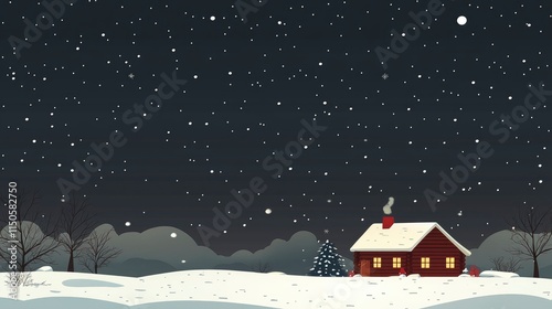 © Tung's companion, Fototapeta premium Cozy Cabin in a Winter Wonderland Snowy Night Scene