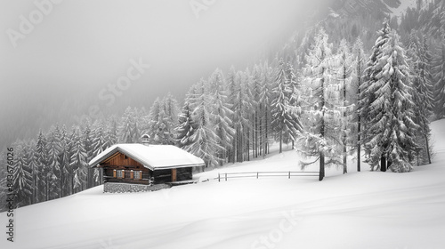 Naklejka premium Cozy Cabin in Snowy Winter Forest