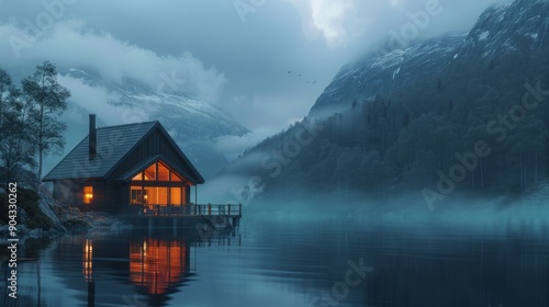 © Glce, Fototapeta premium cozy cabin on the edge of water