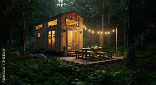 © Misi, Obraz premium Cozy Cabin Retreat Nestled Deep Within A Tranquil Forest Setting