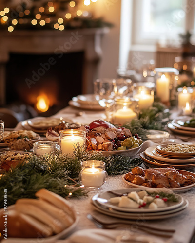 Naklejka premium Cozy Christmas Dinner with Family (christmas-tree)