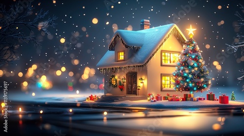 Fototapeta premium Cozy Christmas House in Winter Wonderland