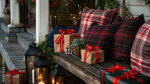 Obraz premium Cozy Christmas porch with vintage lanterns