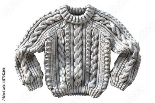 © Rattanathip, Obraz premium Cozy chunky knit sweater in a neutral hue with intricate cable patterns, perfect for a warm and stylish layering piece in chilly weather.