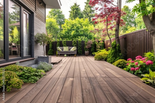 © Baba Images, Fototapeta premium Cozy comfortable wooden terrace balcony