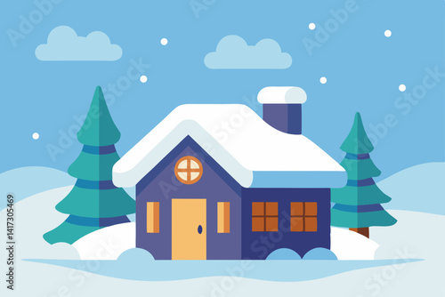 © Radha Rani, Naklejka premium cozy-cottage-covered-in-snow---anime-background