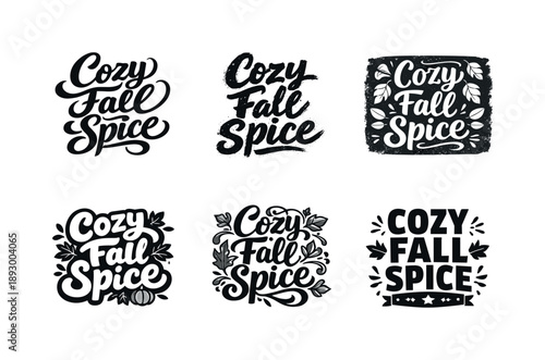 © Viacheslav, Fototapeta premium Cozy Fall Lettering. Cozy fall spice. Set lettering. harmonious lettering variations of the same emblematic concept, each with different artistic