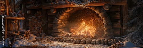 Naklejka premium Cozy fireplace with a warm and inviting glow