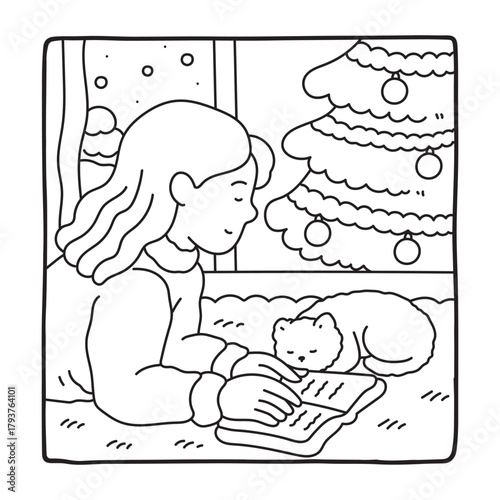 Fototapeta premium Cozy Girl Christmas Coloring Pages, Cozy Girl Christmas Coloring Pages for...