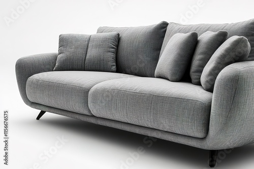 Fototapeta premium Cozy gray sofa with plush cushions, modern design enhances comfo