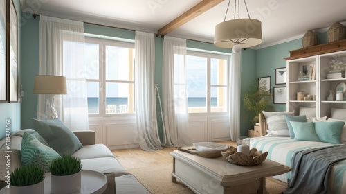 Fototapeta premium Cozy interior with seaside view
