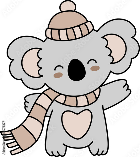 Naklejka premium Cozy Koala Bear Nursery Sweater Scarf Kids Cartoon