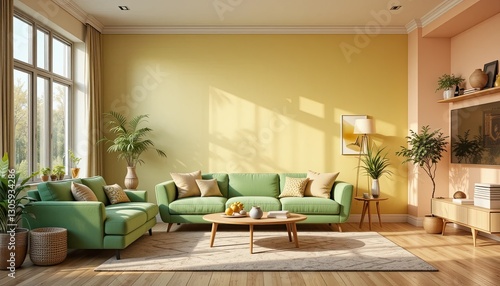 Fototapeta premium Cozy living room interior modern home photo bright environment wide view...