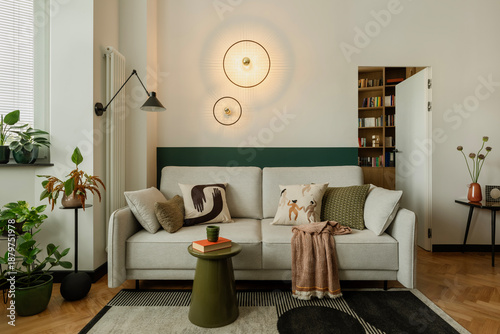 Obraz premium Cozy Living Room Interior with Stylish Decor and Natural Light