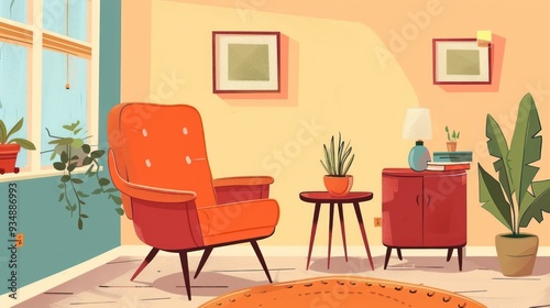 © Iswanto, Fototapeta premium Cozy living room with armchair, side table and plant.