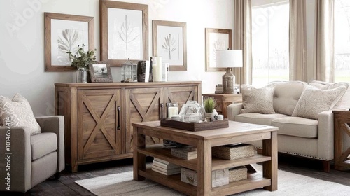 Fototapeta premium Cozy Living Room with Rustic Wooden Furniture