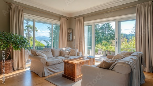 Fototapeta premium Cozy Living Room with Scenic View and Elegant Décor