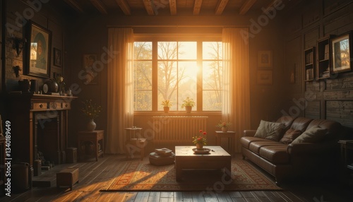 © Kitta Studio, Obraz premium Cozy Living Room with Warm Sunshine and Natural Elements