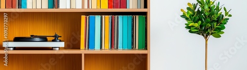 Fototapeta premium Cozy living space with books and a plant, enhancing relaxation and ambiance.